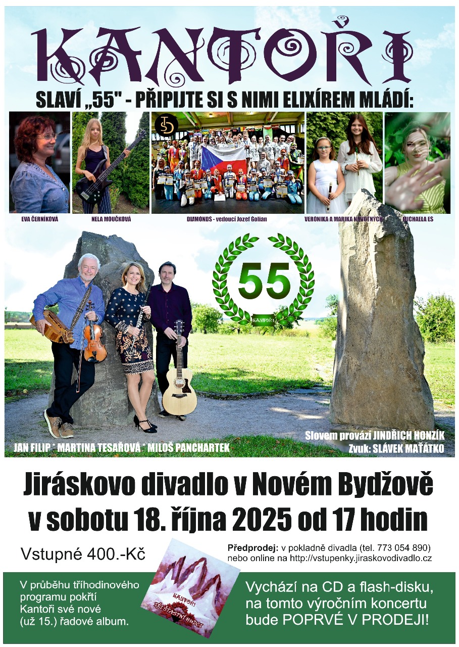 Rok 2025 je pro naši kapelu jubilejní, slavíme 55 let nepřetržité hudební činnosti. Současné 4. složení Kantorů funguje úplně nejdéle ze všech a pořád je nám spolu dobře. Určitě tedy budou nová výroční alba s novými písničkami a věříme, že se budeme s Vámi setkávat po celý rok na našich koncertech. Držte nám pěsti, aby se vše podařilo!!!
